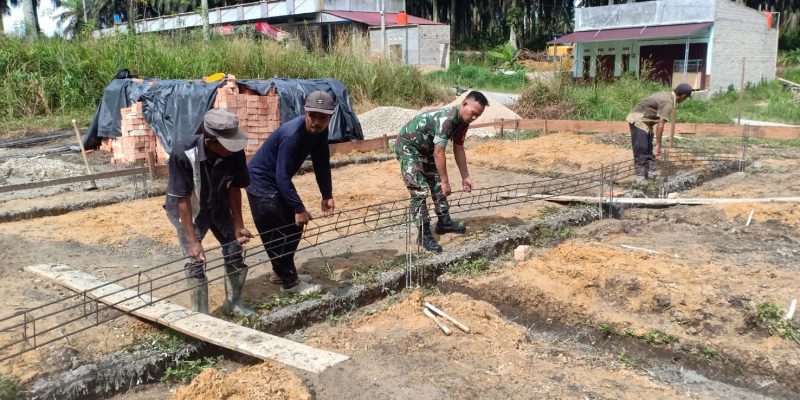 Pelalawan – Guna terciptanya sinergitas TNI bersama rakyat, Babinsa Koramil 15/Kk Kodim 0313/Kpr, Sertu Indra Gunawan melaksanakan karya bakti membantu membuat pondasi untuk pembangunan rumah milik warga binaannya,Abdul warga Desa Mak Teduh Kecamatan Kerumutan Kabupaten Pelalawan, Sabtu (26/08/2023).
