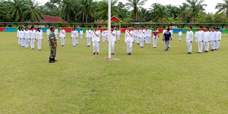 *Tambusai Utara* – Menyongsong puncak peringatan Hari Ulang Tahun (HUT) Kemerdekaan Republik Indonesia yang ke 78, Serma Zulfi Hendri, Babinsa Koramil 11/Tambusai Kodim 0313/Kpr melatih Paskibra tingkat Kecamatan di lapangan bola kaki desa Tambusai Utara Kecamatan Tambusai Utara Kabupaten Rokan Hulu, Sabtu (12/08/2023).