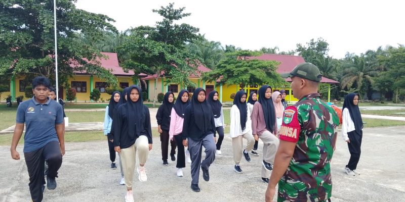Babinsa Koramil 08/Tandun Kodim 0313/Kampar Serda Alex Ranova memberikan pelatihan Peraturan Baris Berbaris (PBB) kepada siswa-siswi SMAN 2 Tandun Desa Dayo Kecamatan Kabun Kabupaten Rohul.