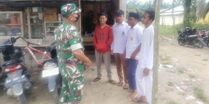 Babinsa Koramil 10/Kunto Darussalam Kodim 0313/KPR Serka MJ. Ginting mendatangi tempat-tempat warga di Desa Bagan Tujuh Kecamatan Kunto Darusalam Kabupaten Rokan Hulu