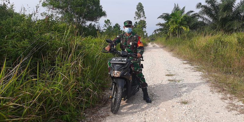 Kampar : Babinsa Koramil 05/KK Kodim 0313/KPR Sertu Mas’ud, terus melakukan patroli cegah karhutla di wilayah binaanya agar tidak terjadinya kebakaran hutan dan lahan (Karhutla).