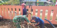Rokan Hulu – Bertempat di Desa Sangkir Indah Kecamatan Pagaran Tapah Darussalam Kabupaten Rokan Hulu, tampak pria berseragam loreng sedang membantu membangun pondasi rencana membangun Tentara Manunggal Air Bersih (TMAB).