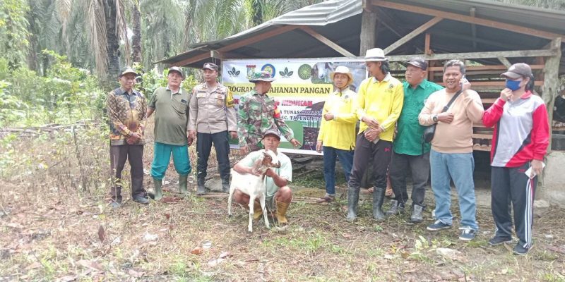 Tapung Hilir,- Upaya pemerintah desa untuk meningkatkan peran BUMDes dalam mendukung ketahanan pangan, baik melalui sektor peternakan, Serka Harjono Babinsa Koramil 16/Tapung Kodim 0313/Kampar menghadiri penyerahan Kambing kepada kelompok tani yang dikelolah BUMDes sebagai program ketahanan pangan di Desa Tapung Lestari Kecamatan Tapung Hilir Kabupaten Kampar. Sabtu (16/08/2025).